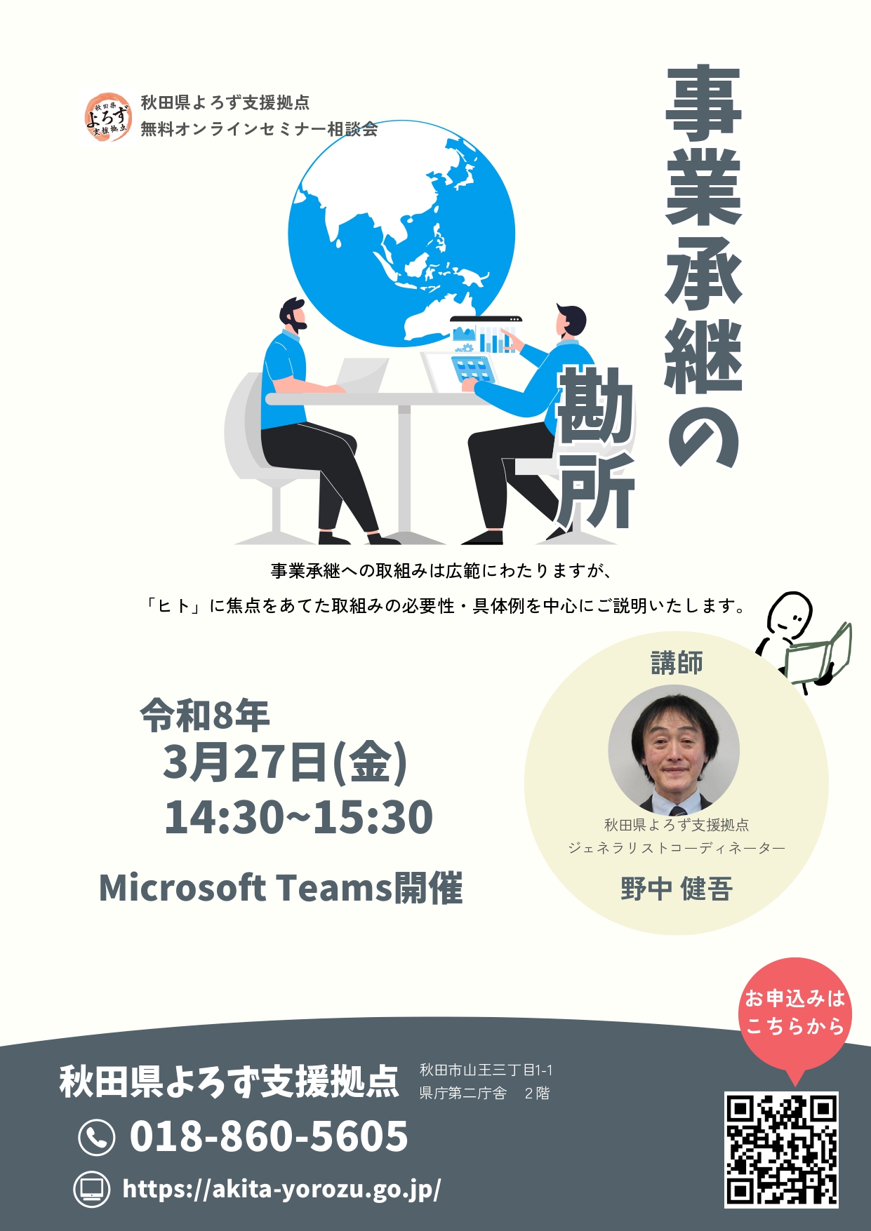 2026年2月24日 【令和8年3月27日開催】オンラインセミナー相談会「事業承継の勘所」 事業承継 募集中 2025年12月22日 【令和8年1月14日開催】オンラインセミナー相談会「M&Aの行方」 事業承継 募集中 2025年11月18日 【令和7年12月24日開催】オンラインセミナー相談会「M&Aの行方」 事業承継 募集中 2025年11月18日 【令和7年12月10日開催】オンラインセミナー相談会「事業承継ことはじめ~歴史に学ぶ編~」 事業承継 募集中 2025年10月21日 【令和7年11月12日開催】オンラインセミナー相談会「ローカルM&Aの活路」 事業承継 募集中 2025年9月19日 【令和7年10月27日開催】オンラインセミナー相談会「売り手側から見るM&Aの工程」 事業承継 募集中 2025年8月21日 【令和7年9月10日開催】オンラインセミナー相談会「ローカルM&Aの工程」 事業承継 募集中 2025年7月28日 【令和7年8月毎週金曜開催】オンラインセミナー相談会「事業承継ヒトハジメ」 事業承継 募集中 2025年6月23日 【令和7年7月毎週月曜開催】オンラインセミナー相談会「地方の事業承継を進めるには」 事業承継 経営改善 募集中 2025年5月27日 【令和7年6月23日開催】オンラインセミナー相談会「地方の事業承継を進めるには」 事業承継 経営改善 資金繰り 募集中 2025年2月19日 【令和7年3月27日開催】オンラインセミナー相談会「流行のM&A意外と知らない落とし穴」 インボイス 事業承継 経営改善 募集中 2025年1月17日 【令和7年2月21日開催】オンラインセミナー相談会「事業承継コトはじめ~歴史に学ぶ編~」 インボイス その他 事業承継 募集中 2024年11月20日 【令和6年12月20日開催】オンラインセミナー相談会「未来へつなぐ経営力!事業承継の成功法則」 インボイス その他 事業承継 募集中 2024年10月25日 【令和6年11月22日開催】オンラインセミナー相談会「流行のM&A。意外と知らない落とし穴!」 インボイス その他 事業承継 人手不足 募集中 2024年5月8日 【令和6年5月24日開催】オンラインセミナー「事業承継コトはじめ ~歴史に学ぶ編~」 インボイス 事業承継 売上拡大 業務改善・生産性向上 経営改善 募集中 2024年5月1日 2024年5月 オンラインセミナーのお知らせ IT利活用 広報戦略 WEB戦略 インボイス 事業承継 人手不足 創業支援 商品開発 売上拡大 廃業 業務改善・生産性向上 経営改善 補助金活用 販路開拓 資金繰り 雇用・労務 募集中 2024年4月8日 2024年4月 オンラインセミナーのお知らせ 広報戦略 WEB戦略 事業承継 人手不足 売上拡大 業務改善・生産性向上 経営改善 観光・集客 資金繰り 雇用・労務 受付終了 2024年1月31日 【毎週金曜日開催】ミニ勉強会「事業(経営)承継 コトはじめ」※終了しました 事業承継 廃業 経営改善 受付終了 2024年1月31日 【2月20日開催】「資産と経営の上手なバトンの渡し方!~10年先を見据えた事業経営承継のコツ!~」参加者募集中です インボイス 事業承継 人手不足 創業支援 売上拡大 廃業 業務改善・生産性向上 経営改善 募集中 2023年12月25日 【1月12・19・26日開催】ミニ勉強会「事業(経営)承継 コトはじめ」参加者募集中です 事業承継 廃業 経営改善 募集中 2023年11月17日 【12月1・8・15日開催】ミニ勉強会「事業(経営)承継 コトはじめ」参加者募集中です 事業承継 廃業 経営改善 募集中 2023年10月31日 【11月10・17・24日開催】ミニ勉強会「事業(経営)承継 コトはじめ」参加者募集中です 事業承継 廃業 経営改善 募集中 2023年10月4日 【10月6・13・20日開催】ミニ勉強会「事業(経営)承継 コトはじめ」※終了しました 事業承継 廃業 経営改善 受付終了 2023年9月15日 【9月1・8・15日開催】ミニ勉強会「事業(経営)承継 コトはじめ」※終了しました 事業承継 廃業 経営改善 受付終了 2023年6月26日 【第1・3金曜日開催】ミニ勉強会「事業(経営)承継 コトはじめ」※終了しました 事業承継 廃業 経営改善 受付終了 2023年2月6日 「10年先のあなたのお店を考えるワークショップ」事業承継セミナー&相談会のご案内 事業承継 受付終了 2022年9月22日 「10年先のあなたの会社を考えるワークショップ」事業承継セミナー&相談会のご案内 事業承継 受付終了 1 / 11