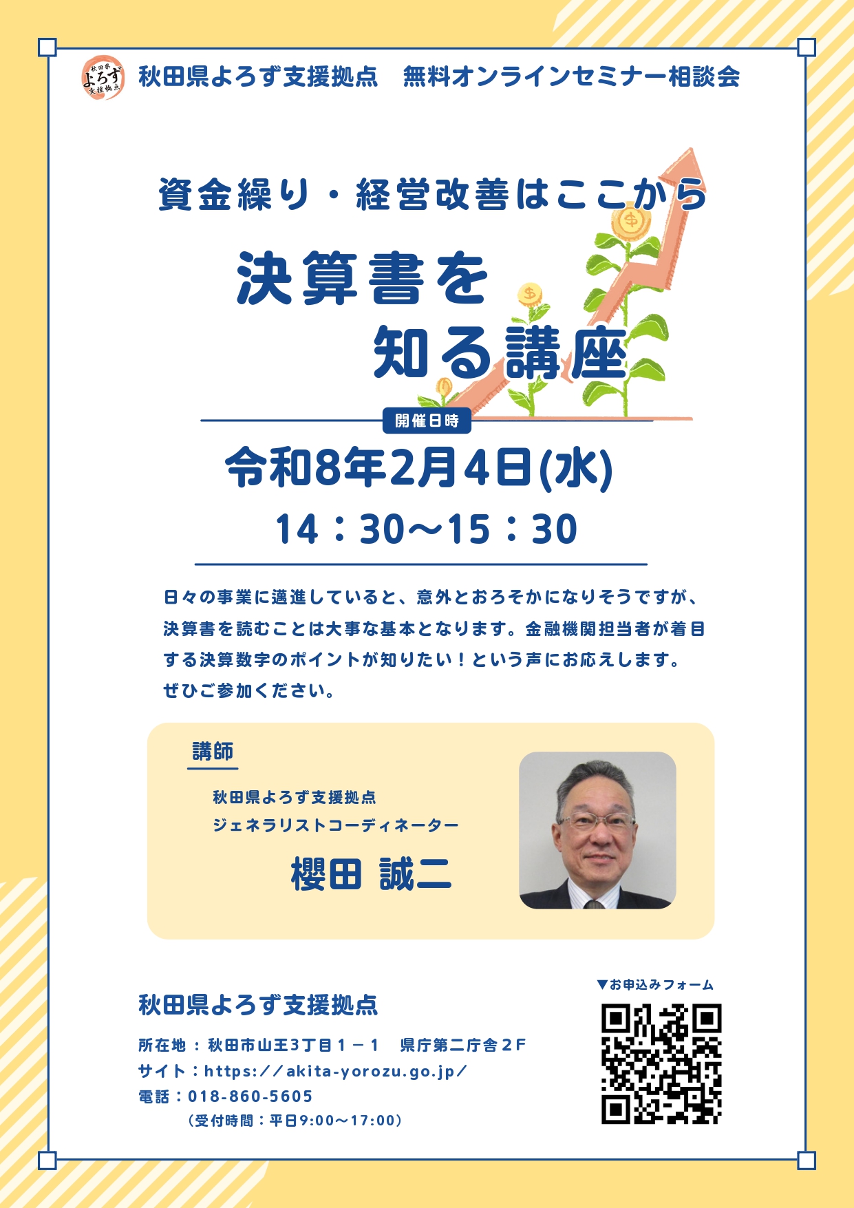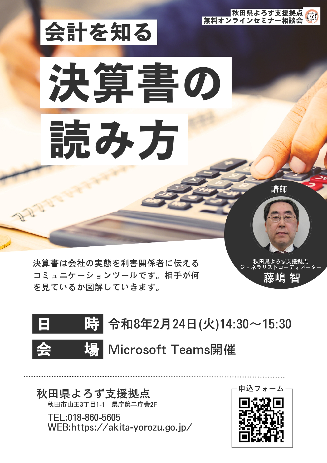 2026年1月22日 【令和8年2月27日開催】オンラインセミナー相談会「SDGs経営のススメ!」 経営改善 資金繰り 募集中 2026年1月22日 【令和8年2月26日開催】オンラインセミナー相談会「スムーズな資金調達!金融機関との交渉術」 経営改善 資金繰り 募集中 2026年1月22日 【令和8年2月24日開催】オンラインセミナー相談会「会計を知る『決算書の読み方』」 経営改善 資金繰り 募集中 2026年1月22日 【令和8年2月4日開催】オンラインセミナー相談会「資金繰り・経営改善はここから~決算書を知る講座~」 経営改善 資金繰り 募集中 2025年12月22日 【令和8年1月14日開催】オンラインセミナー相談会「資金繰り・経営改善はここから ~決算書を知る講座~」 売上拡大 資金繰り 募集中 2025年11月18日 【令和7年12月25日開催】オンラインセミナー相談会「資金繰りの見える化と資金不足の対応」 資金繰り 募集中 2025年11月18日 【令和7年12月17日開催】オンラインセミナー相談会「経営者必見!『会社数字』の勘所」 経営改善 資金繰り 募集中 2025年10月21日 【令和7年11月11日開催】オンラインセミナー相談会「資金繰り改善のコツ」 経営改善 資金繰り 募集中 2025年9月19日 【令和7年10月30日開催】オンラインセミナー相談会「資金繰りの見える化と資金不足の対応」 資金繰り 募集中 2025年8月21日 【令和7年9月10日開催】オンラインセミナー相談会「経営者必見!「会社数字」の勘所」 経営改善 資金繰り 募集中 2025年7月28日 【令和7年8月毎週木曜開催】オンラインセミナー相談会「経営改善報告書を作ってみませんか?」 経営改善 資金繰り 募集中 2025年7月28日 【令和7年8月毎週木曜開催】オンラインセミナー相談会「資金繰りで悩まないための『資金繰り表』作成セミナー」 経営改善 資金繰り 募集中 2025年7月28日 【令和7年8月毎週水曜開催】オンラインセミナー相談会「資金繰りで悩まないための『資金繰り表』作成セミナー」 経営改善 資金繰り 募集中 2025年7月28日 【令和7年8月毎週水曜開催】オンラインセミナー相談会「自社の強みを時流に活かす」 売上拡大 経営改善 資金繰り 募集中 2025年7月25日 【令和7年8月毎週火曜開催】オンラインセミナー相談会「原価計算の基本知識」 売上拡大 経営改善 資金繰り 募集中 2025年6月23日 【令和7年7月毎週木曜開催】オンラインセミナー相談会「再確認、資金繰り改善のコツ」 経営改善 資金繰り 募集中 2025年6月23日 【令和7年7月毎週木曜開催】オンラインセミナー相談会「スムーズな資金調達! 金融機関との交渉術②」 経営改善 資金繰り 募集中 2025年6月23日 【令和7年7月毎週水曜開催】オンラインセミナー相談会「経営者必見!『会社数字』の勘所」 経営改善 資金繰り 募集中 2025年5月28日 【令和7年6月26日開催】オンラインセミナー相談会「図解 決算書の読み方」 業務改善・生産性向上 経営改善 資金繰り 募集中 2025年5月28日 【令和7年6月26日開催】オンラインセミナー相談会「スムーズな資金調達! 金融機関との交渉術」 業務改善・生産性向上 経営改善 資金繰り 募集中 2025年5月27日 【令和7年6月24日開催】オンラインセミナー相談会「経営の見える化による課題発見と事例研修」 売上拡大 業務改善・生産性向上 経営改善 資金繰り 募集中 2025年5月27日 【令和7年6月23日開催】オンラインセミナー相談会「地方の事業承継を進めるには」 事業承継 経営改善 資金繰り 募集中 2025年5月27日 【令和7年6月30日開催】オンラインセミナー相談会「価格転嫁と収益改善」 売上拡大 業務改善・生産性向上 経営改善 資金繰り 募集中 2025年5月27日 【令和7年6月10日開催】オンラインセミナー相談会「資金繰り・経営改善はここから~決算書の読み方講座~」 売上拡大 業務改善・生産性向上 経営改善 資金繰り 募集中 2025年4月25日 【令和7年5月22日開催】オンラインセミナー相談会「ものづくり事業者向け 経営数値把握の重要性理解と経営診断の活用について」 業務改善・生産性向上 経営改善 資金繰り 募集中 2025年4月25日 【令和7年5月19日開催】オンラインセミナー相談会「販路開拓-「売れない」を「売れる」に変える-」 売上拡大 経営改善 補助金活用 販路開拓 資金繰り 募集中 2025年4月25日 【令和7年5月16日開催】オンラインセミナー相談会「施策活用と事業計画書のポイント」 経営改善 補助金活用 資金繰り 募集中 2025年2月19日 【令和7年3月26日開催】オンラインセミナー相談会「補助金活用に必要な事業計画のつくりかた」 インボイス 経営改善 補助金活用 資金繰り 募集中 2025年2月19日 【令和7年3月25日開催】オンラインセミナー相談会「小規模事業者向け 定量化で見える化し小さな成功モデルを体験!」 インボイス 経営改善 資金繰り 募集中 2025年1月17日 【令和7年2月20日開催】オンラインセミナー相談会「製造業向け 不良品発生の削減による資金繰り改善」 インボイス 業務改善・生産性向上 資金繰り 募集中 1 / 212»
