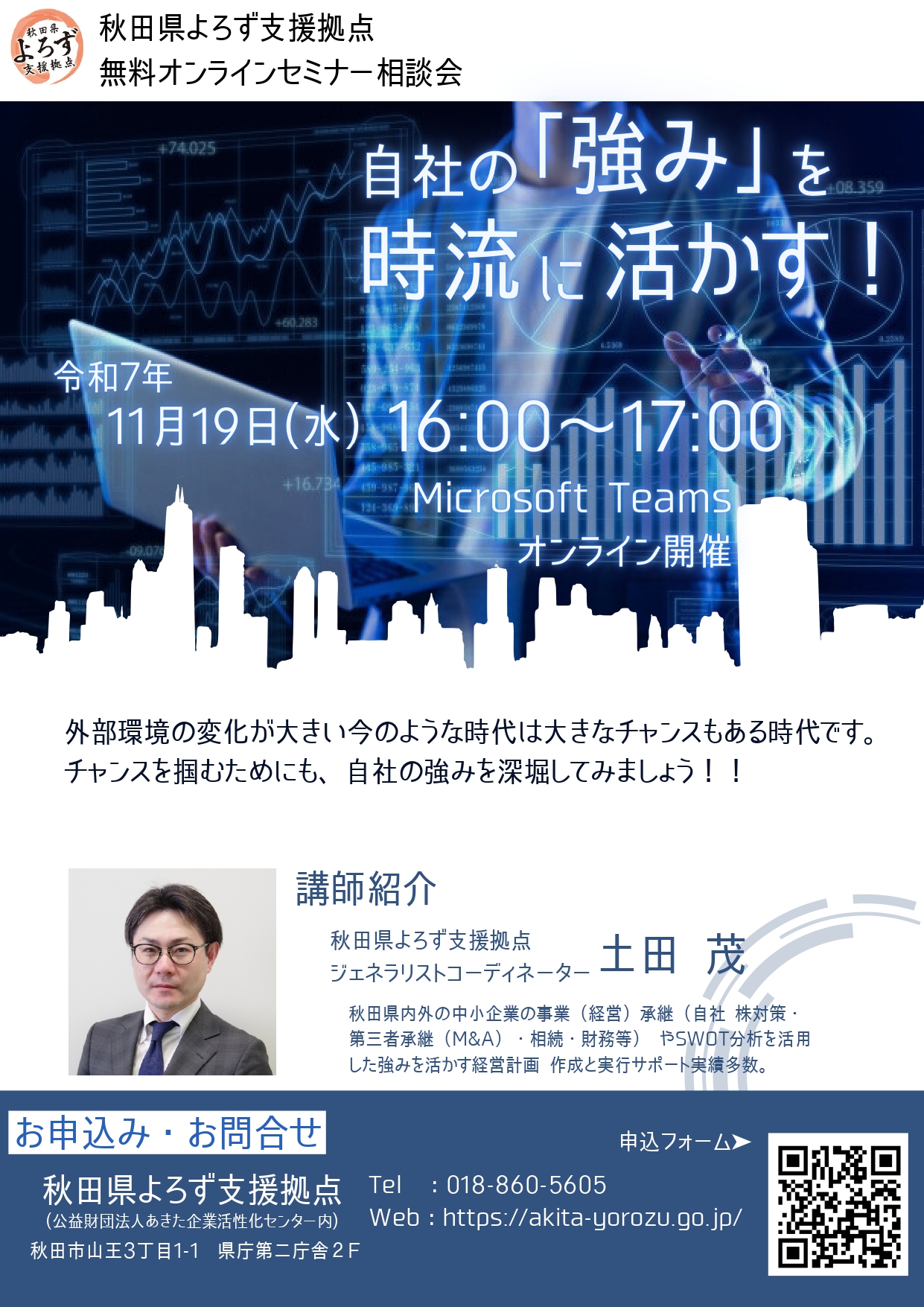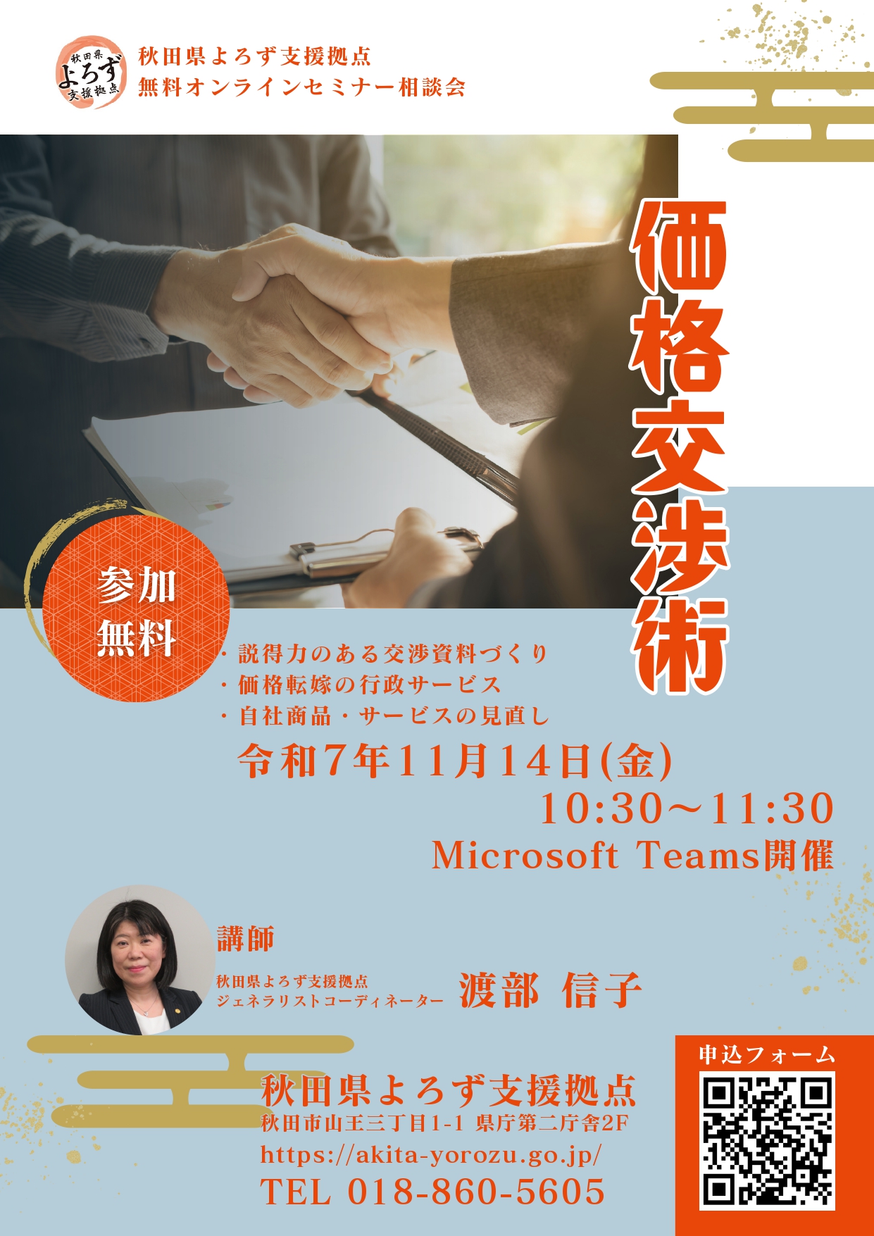 2025年10月21日 【令和7年11月19日開催】オンラインセミナー相談会「自社の「強み」を時流に活かす!」 売上拡大 募集中 2025年10月21日 【令和7年11月14日開催】オンラインセミナー相談会「価格交渉術」 売上拡大 募集中 2025年10月21日 【令和7年11月10日開催】オンラインセミナー相談会「価格転嫁のススメ」 売上拡大 経営改善 募集中 2025年9月19日 【令和7年10月15日開催】オンラインセミナー相談会「創業・新規事業に使えるマーケティングの基礎講座」 売上拡大 販路開拓 募集中 2025年8月21日 【令和7年9月30日開催】オンラインセミナー相談会「業務効率化と施策活用のポイント」 売上拡大 経営改善 募集中 2025年8月21日 【令和7年9月25日開催】オンラインセミナー相談会「組織力を高める!!SDGs実践講座」 売上拡大 経営改善 募集中 2025年8月21日 【令和7年9月25日開催】オンラインセミナー相談会「融資や補助金が良く分かる創業セミナー」 売上拡大 経営改善 募集中 2025年8月21日 【令和7年9月25日開催】オンラインセミナー相談会「無形資産の活用のコツ」 売上拡大 募集中 2025年8月21日 【令和7年9月24日開催】オンラインセミナー相談会「売上につながる「付加価値」の磨き方講座」 売上拡大 募集中 2025年7月28日 【令和7年8月毎週水曜開催】オンラインセミナー相談会「LINE公式アカウントを始めよう!」 SNS IT利活用 売上拡大 募集中 2025年7月28日 【令和7年8月毎週水曜開催】オンラインセミナー相談会「自社の強みを時流に活かす」 売上拡大 経営改善 資金繰り 募集中 2025年7月25日 【令和7年8月毎週火曜開催】オンラインセミナー相談会「原価計算の基本知識」 売上拡大 経営改善 資金繰り 募集中 2025年7月25日 【令和7年8月毎週月曜開催】オンラインセミナー相談会「価格転嫁のススメ」 売上拡大 経営改善 募集中 2025年6月23日 【令和7年7月毎週水曜開催】オンラインセミナー相談会「創業・新規事業のためのマーケティング講座」 売上拡大 販路開拓 募集中 2025年6月23日 【令和7年7月毎週火曜開催】オンラインセミナー相談会「業務効率化と施策活用のポイント」 売上拡大 経営改善 募集中 2025年6月23日 【令和7年7月毎週火曜開催】オンラインセミナー相談会「収益性の成果に繋がる改善とは」 売上拡大 経営改善 募集中 2025年6月23日 【令和7年7月毎週月曜開催】オンラインセミナー相談会「AIでラクラク議事録作成」 売上拡大 経営改善 募集中 2025年6月23日 【令和7年7月毎週月曜開催】オンラインセミナー相談会「価格転嫁のススメ~適正な価格転嫁を進めるための分析~」 売上拡大 経営改善 募集中 2025年5月28日 【令和7年6月30日開催】オンラインセミナー相談会「価格転嫁のススメ~適正な価格転嫁を進めるための分析~」 売上拡大 経営改善 募集中 2025年5月28日 【令和7年6月27日開催】オンラインセミナー相談会「事業の継続・発展に向けたSDGs経営のススメ!!」 売上拡大 経営改善 募集中 2025年5月28日 【令和7年6月25日開催】オンラインセミナー相談会「強みを活かして売上拡大 生成AIで強みを発見!?」 AI活用 IT利活用 売上拡大 業務改善・生産性向上 募集中 2025年5月27日 【令和7年6月24日開催】オンラインセミナー相談会「経営の見える化による課題発見と事例研修」 売上拡大 業務改善・生産性向上 経営改善 資金繰り 募集中 2025年5月27日 【令和7年6月17日開催】オンラインセミナー相談会「もう他人事ではない DXは必要?不要?」 IT利活用 WEB戦略 人手不足 売上拡大 募集中 2025年5月27日 【令和7年6月30日開催】オンラインセミナー相談会「価格転嫁と収益改善」 売上拡大 業務改善・生産性向上 経営改善 資金繰り 募集中 2025年5月27日 【令和7年6月10日開催】オンラインセミナー相談会「資金繰り・経営改善はここから~決算書の読み方講座~」 売上拡大 業務改善・生産性向上 経営改善 資金繰り 募集中 2025年4月25日 【令和7年5月23日開催】オンラインセミナー相談会「強みを積極戦略に! 生成AIで簡単作成!」 AI活用 商品開発 売上拡大 業務改善・生産性向上 募集中 2025年4月25日 【令和7年5月21日開催】オンラインセミナー相談会「下請け事業者様、必見 価格交渉術」 その他 売上拡大 業務改善・生産性向上 募集中 2025年4月25日 【令和7年5月19日開催】オンラインセミナー相談会「販路開拓-「売れない」を「売れる」に変える-」 売上拡大 経営改善 補助金活用 販路開拓 資金繰り 募集中 2025年2月19日 【令和7年3月13日開催】オンラインセミナー相談会「商品開発における原価率を抑えるポイント」 インボイス 商品開発 売上拡大 募集中 2025年2月19日 【令和7年3月12日開催】オンラインセミナー相談会「販路開拓と販売は異なるものなんです。」 インボイス 売上拡大 販路開拓 募集中 1 / 612345...»最後 »