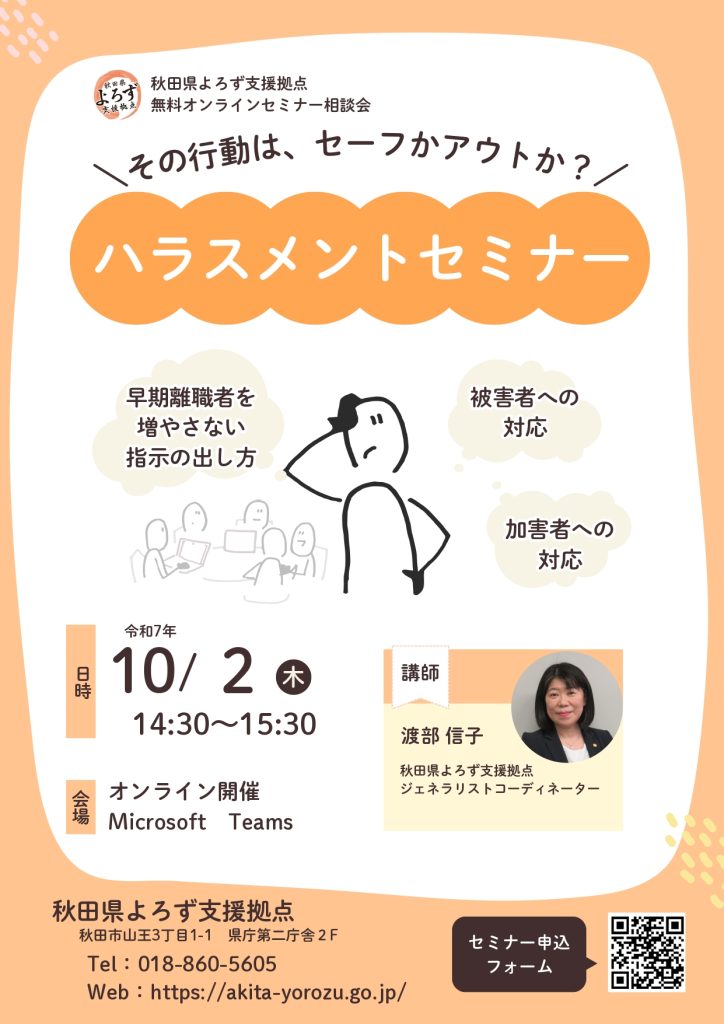 【令和7年10月2日開催】オンラインセミナー相談会「その行動は、セーフかアウトか? ハラスメントセミナー」【満員御礼】