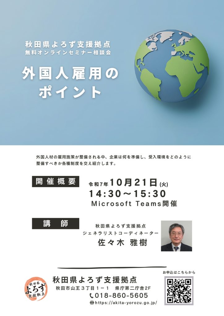 【令和7年10月21日開催】オンラインセミナー相談会「外国人雇用のポイント」