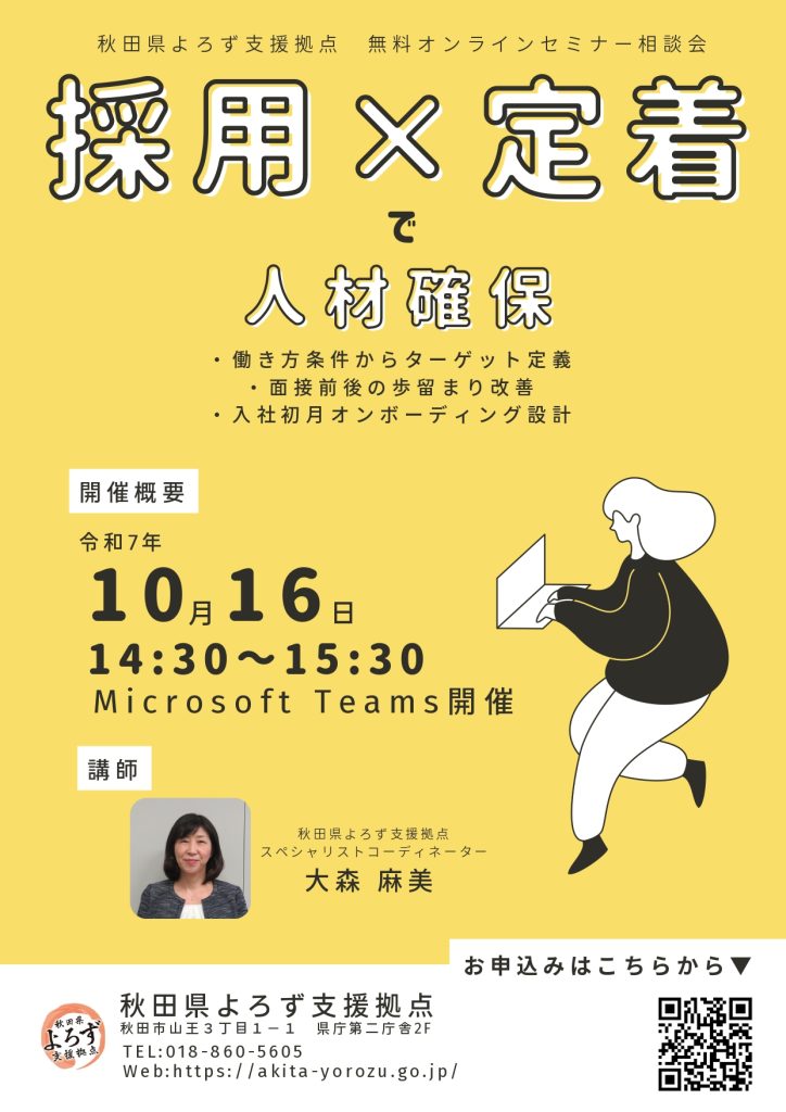 【令和7年10月16日開催】オンラインセミナー相談会「『採用×定着』で人材確保」