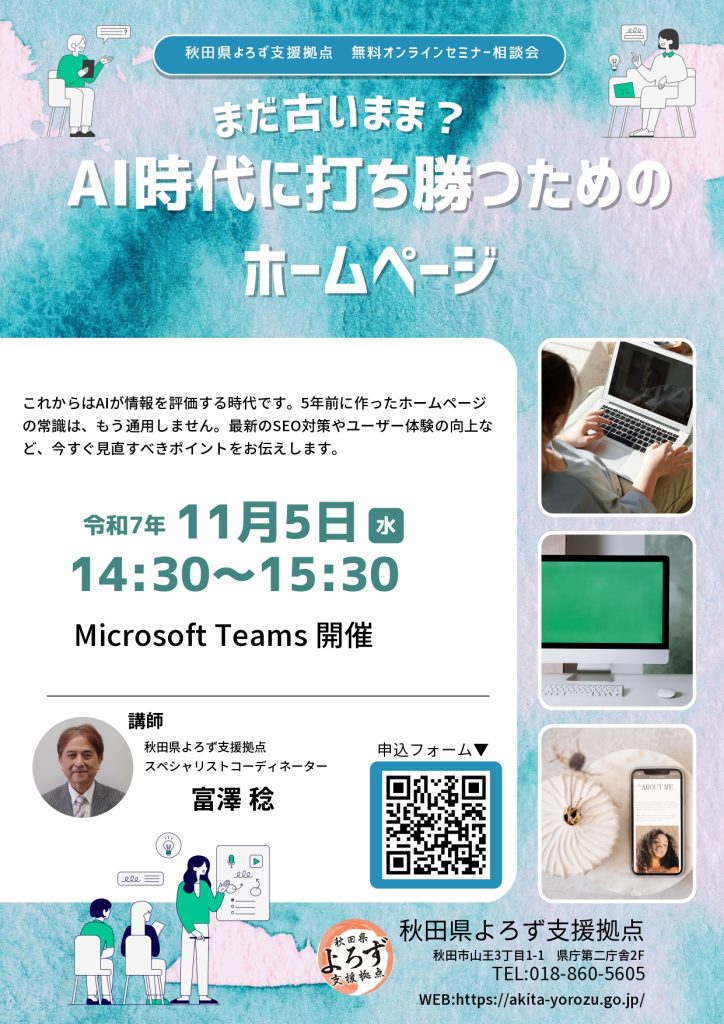 【令和7年11月5日開催】オンラインセミナー相談会「まだ古いまま? AI時代に勝ち抜くためのホームページ」
