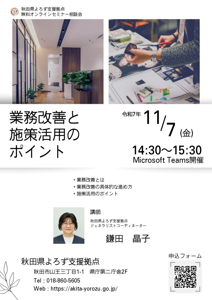 【令和7年11月7日開催】オンラインセミナー相談会「業務改善と施策活用のポイント」
