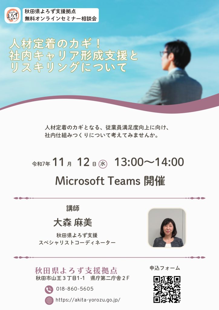 【令和7年11月12日開催】オンラインセミナー相談会「人材定着のカギ!社内キャリア形成支援とリスキリングについて」