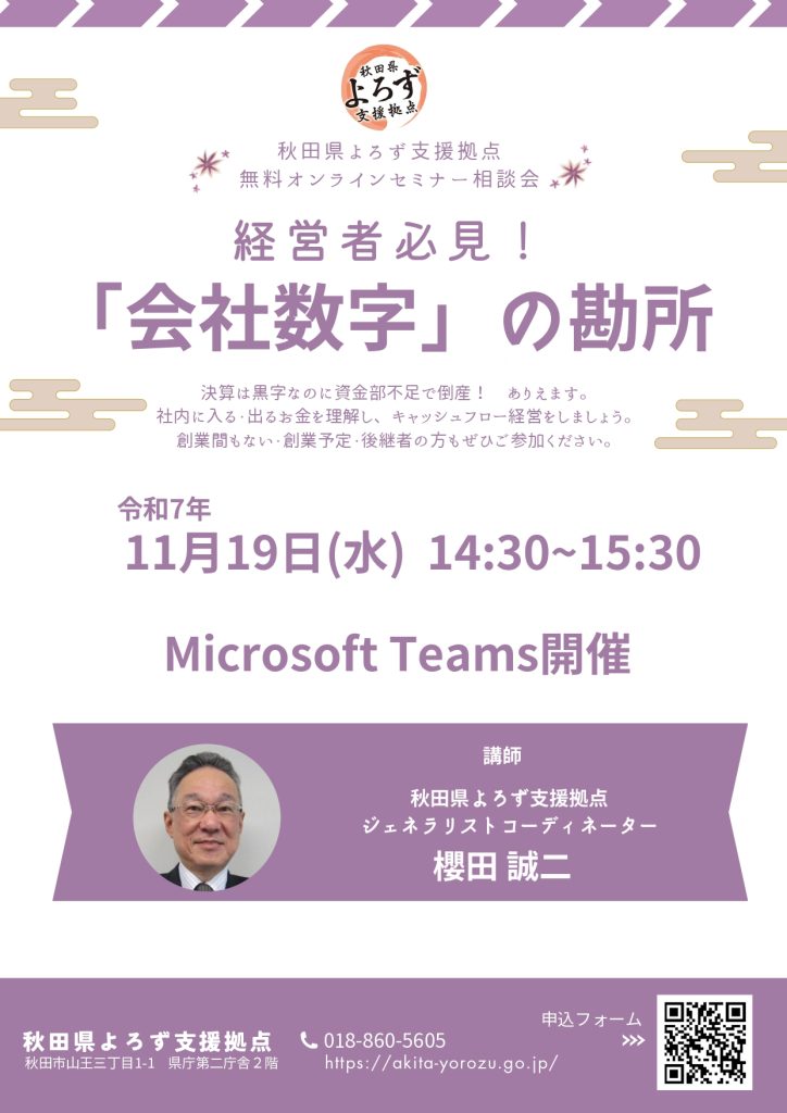 【令和7年11月18日開催】オンラインセミナー相談会「経営者必見!「会社数字」の勘所」