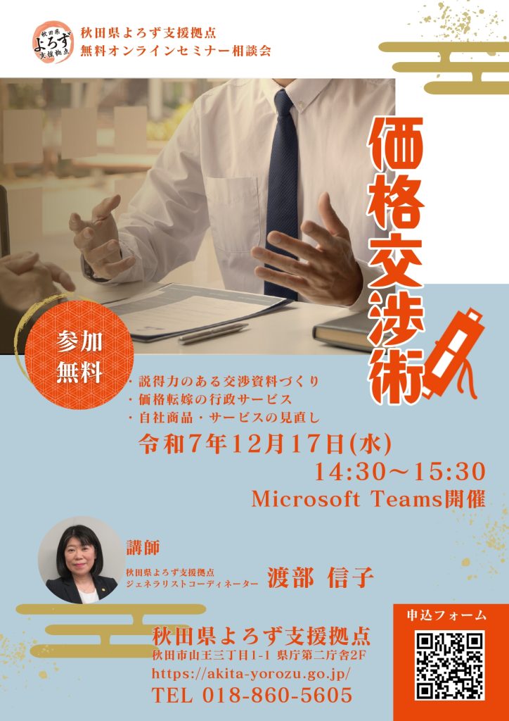 【令和7年12月17日開催】オンラインセミナー相談会「価格交渉術」