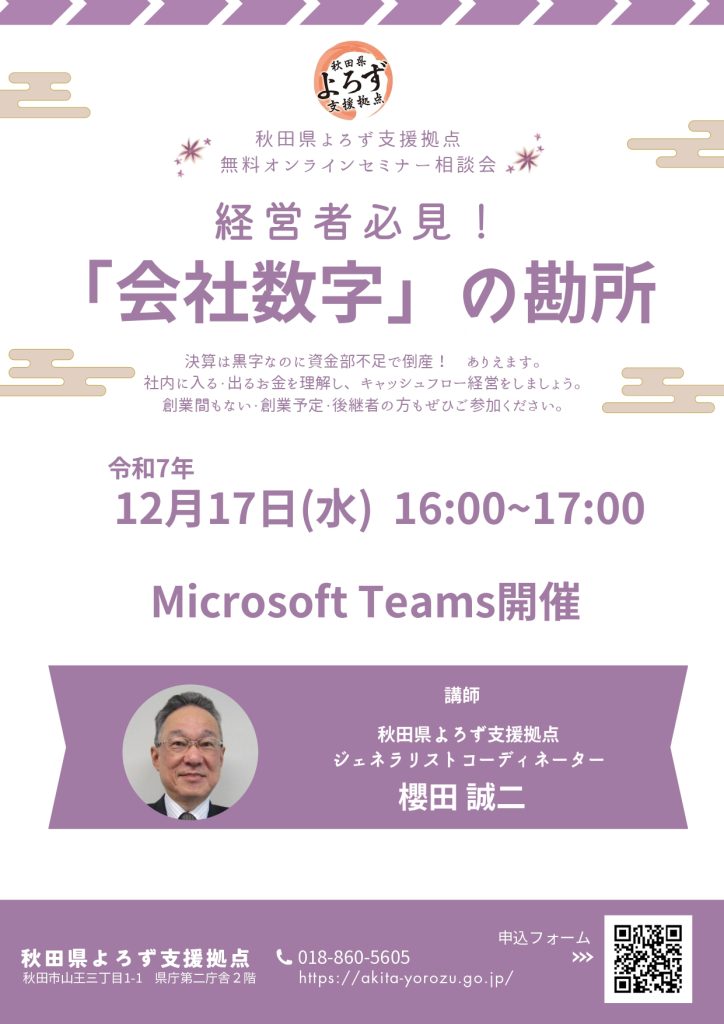 【令和7年12月17日開催】オンラインセミナー相談会「経営者必見!『会社数字』の勘所」
