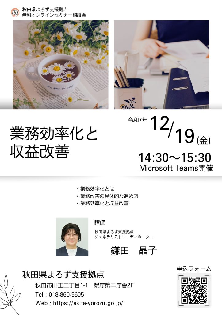 【令和7年12月19日開催】オンラインセミナー相談会「業務効率化と収益改善」
