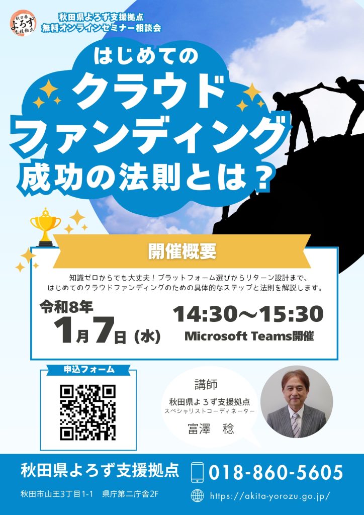 【令和8年1月7日開催】オンラインセミナー相談会「はじめてのクラウドファンディング 成功の法則とは?」