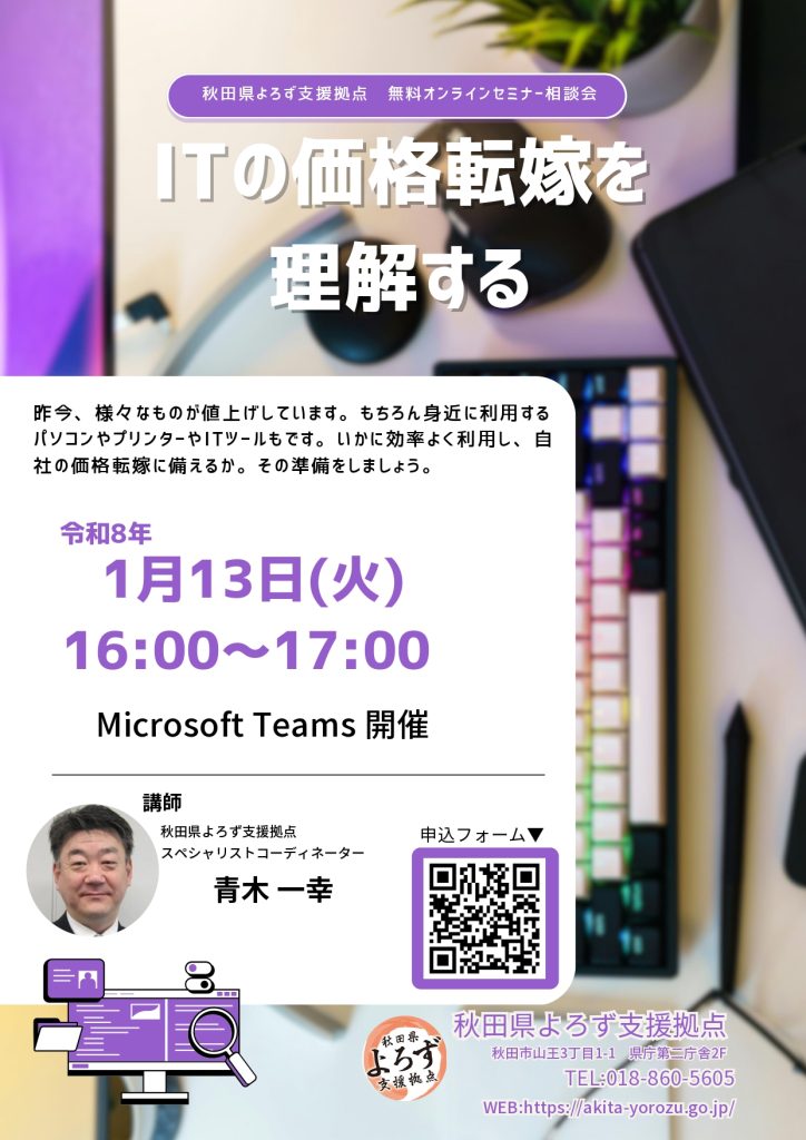 【令和8年1月13日開催】オンラインセミナー相談会「ITの価格転嫁を理解する」