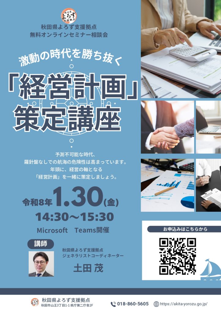 【令和8年1月30日開催】オンラインセミナー相談会「激動の時代を勝ち抜く! 『経営計画』策定講座」