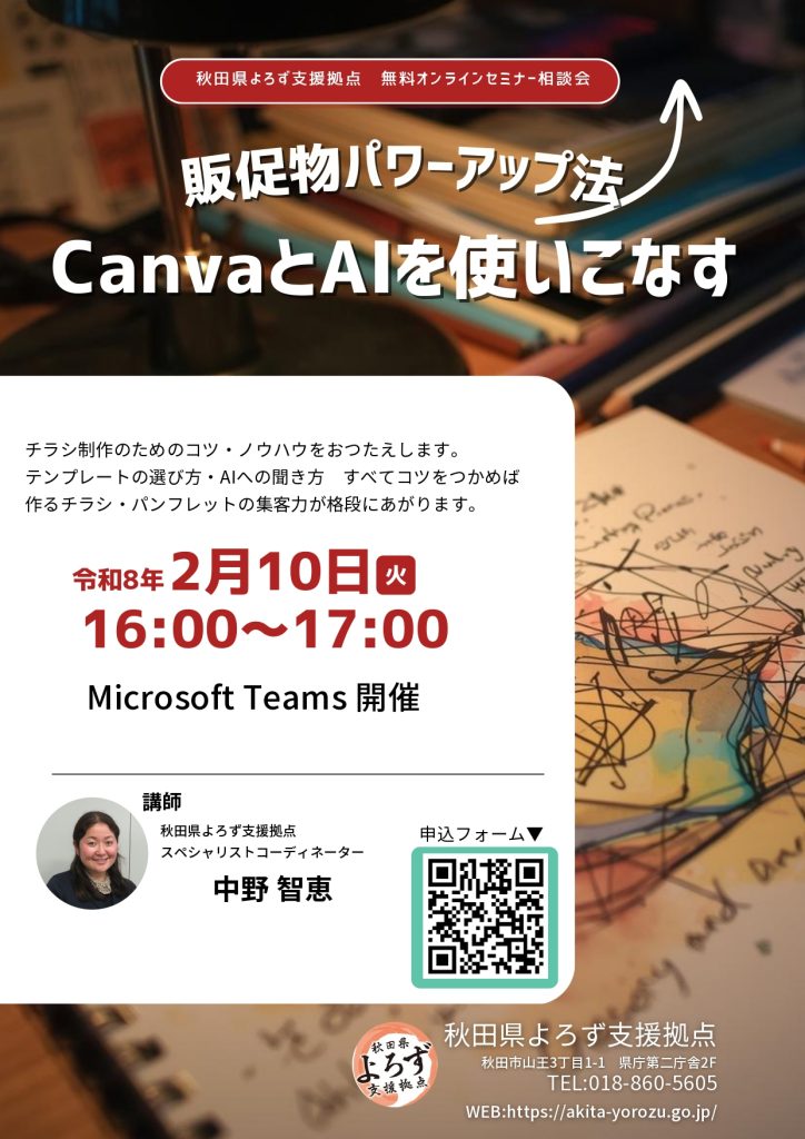 【令和8年2月10日開催】オンラインセミナー相談会「販促物パワーアップ法 CanvaとAIを使いこなす」