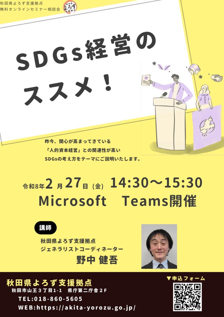 【令和8年2月27日開催】オンラインセミナー相談会「SDGs経営のススメ!」