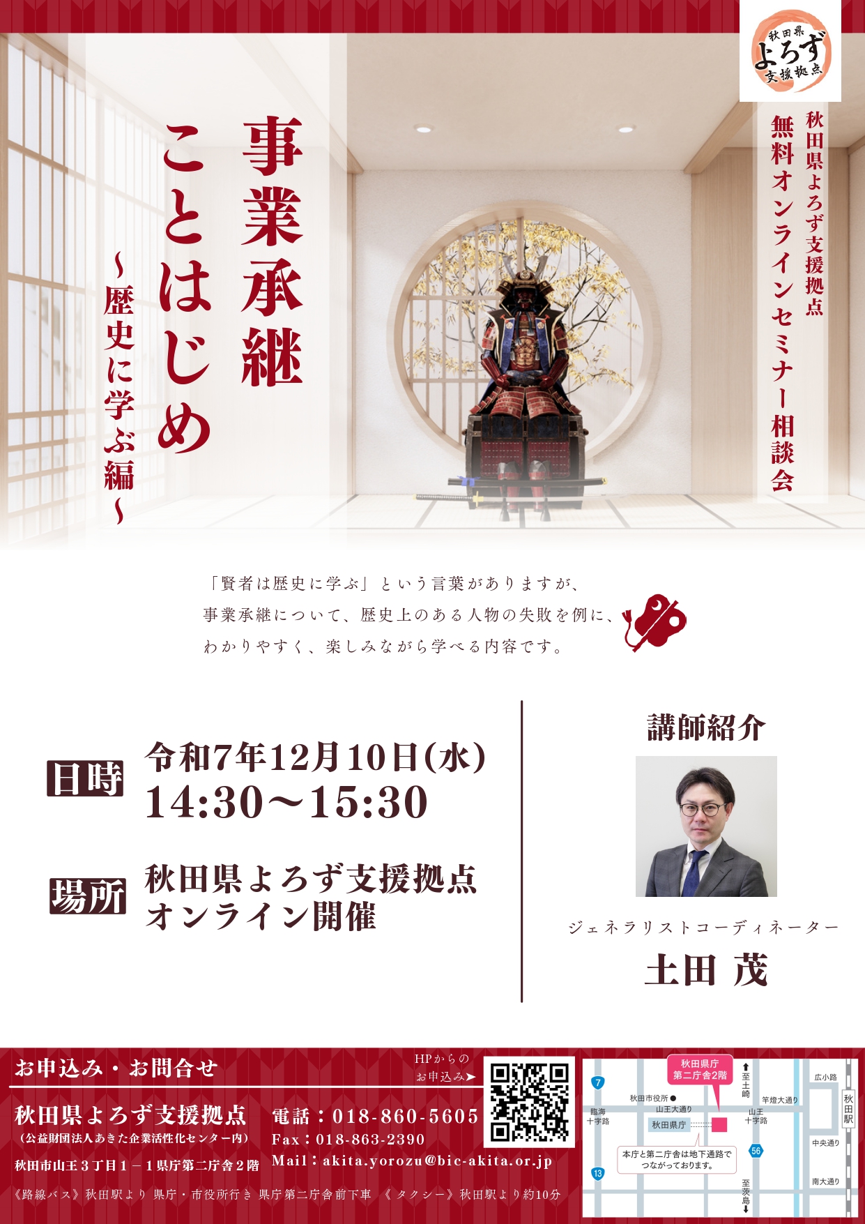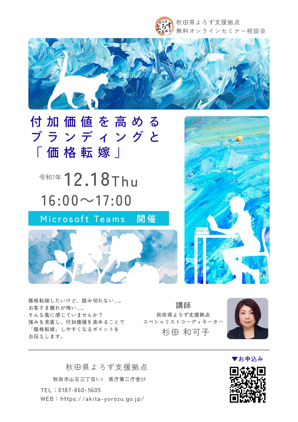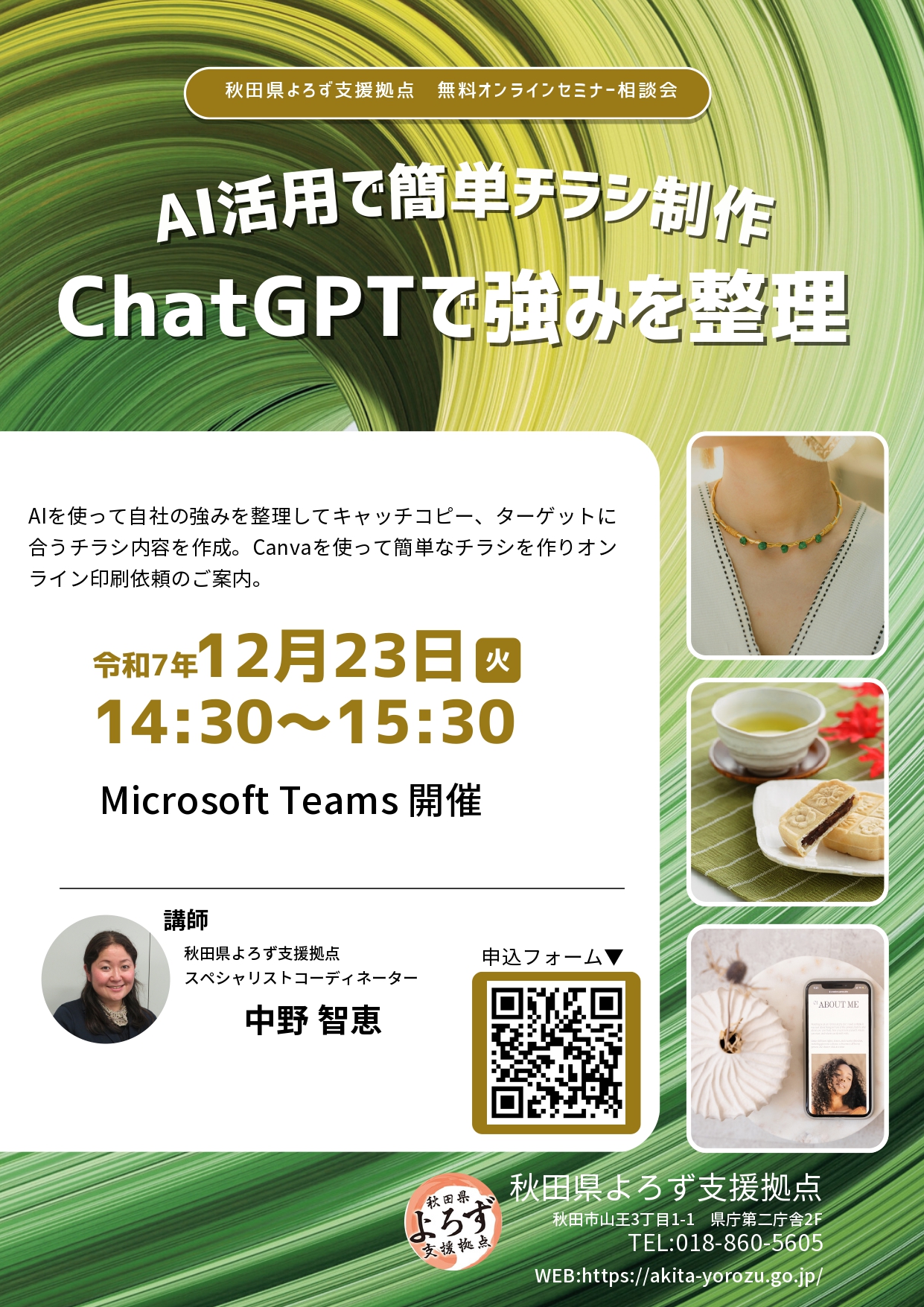 2025年11月18日 【令和7年12月26日開催】オンラインセミナー相談会「組織力を高める!!SDGs実践講座」 雇用・労務 募集中 2025年11月18日 【令和7年12月25日開催】オンラインセミナー相談会「資金繰りの見える化と資金不足の対応」 資金繰り 募集中 2025年11月18日 【令和7年12月24日開催】オンラインセミナー相談会「M&Aの行方」 事業承継 募集中 2025年11月18日 【令和7年12月23日開催】オンラインセミナー相談会「AI活用で簡単チラシ制作 ChatGPTで強みを整理」 AI活用 IT利活用 募集中 2025年11月18日 【令和7年12月22日開催】オンラインセミナー相談会「ChatGPT定番の質問文24選」 AI活用 IT利活用 募集中 2025年11月18日 【令和7年12月19日開催】オンラインセミナー相談会「業務効率化と収益改善」 経営改善 募集中 2025年11月18日 【令和7年12月18日開催】オンラインセミナー相談会「付加価値を高めるブランディングと『価格転嫁』」 経営改善 募集中 2025年11月18日 【令和7年12月18日開催】オンラインセミナー相談会「価格転嫁の資料作成、交渉術について」 経営改善 募集中 2025年11月18日 【令和7年12月17日開催】オンラインセミナー相談会「経営者必見!『会社数字』の勘所」 経営改善 資金繰り 募集中 2025年11月18日 【令和7年12月17日開催】オンラインセミナー相談会「価格交渉術」 売上拡大 募集中 2025年11月18日 【令和7年12月12日開催】オンラインセミナー相談会「地域企業の人材確保強化セミナー」 人手不足 雇用・労務 募集中 2025年11月18日 【令和7年12月10日開催】オンラインセミナー相談会「事業承継ことはじめ~歴史に学ぶ編~」 事業承継 募集中 2025年11月18日 【令和7年12月9日開催】オンラインセミナー相談会「安心安全なセキュリティ対策できていますか?」 IT利活用 募集中 2025年11月18日 【令和7年12月9日開催】オンラインセミナー相談会「原価計算の基本知識」 経営改善 募集中 2025年11月18日 【令和7年12月3日開催】オンラインセミナー相談会「『とりあえずあるだけ』のHPは危険! AI時代に取り残されないWeb活用」 AI活用 IT利活用 募集中 2025年11月18日 【令和7年12月1日開催】オンラインセミナー相談会「価格転嫁のススメ」 売上拡大 経営改善 募集中 2025年10月21日 【令和7年11月28日開催】オンラインセミナー相談会「SDGsが地域を救う!-人材の獲得・維持、事業ブランド構築に向けて-」 業務改善・生産性向上 募集中 2025年10月21日 【令和7年11月26日開催】オンラインセミナー相談会「お客さまの心を掴み集客に繋がるブランディングとは」 広報戦略 募集中 2025年10月21日 【令和7年11月19日開催】オンラインセミナー相談会「自社の「強み」を時流に活かす!」 売上拡大 募集中 2025年10月21日 【令和7年11月18日開催】オンラインセミナー相談会「経営者必見!「会社数字」の勘所」 経営改善 募集中 2025年10月21日 【令和7年11月18日開催】オンラインセミナー相談会「安心安全なセキュリティ対策できていますか?」 IT利活用 募集中 2025年10月21日 【令和7年11月18日開催】オンラインセミナー相談会「コンテンツ(著作物)の利用について」 知財活用 募集中 2025年10月21日 【令和7年11月18日開催】オンラインセミナー相談会「営業力強化はじめの一歩」 AI活用 IT利活用 募集中 2025年10月21日 【令和7年11月17日開催】オンラインセミナー相談会「議事録はAIにおまかせ!会議の効率を一気にアップ!」 AI活用 IT利活用 募集中 2025年10月21日 【令和7年11月14日開催】オンラインセミナー相談会「価格交渉術」 売上拡大 募集中 2025年10月21日 【令和7年11月12日開催】オンラインセミナー相談会「ローカルM&Aの活路」 事業承継 募集中 2025年10月21日 【令和7年11月12日開催】オンラインセミナー相談会「人材定着のカギ!社内キャリア形成支援とリスキリングについて」 人手不足 募集中 2025年10月21日 【令和7年11月11日開催】オンラインセミナー相談会「資金繰り改善のコツ」 経営改善 資金繰り 募集中 2025年10月21日 【令和7年11月10日開催】オンラインセミナー相談会「価格転嫁のススメ」 売上拡大 経営改善 募集中 2025年10月21日 【令和7年11月7日開催】オンラインセミナー相談会「業務改善と施策活用のポイント」 経営改善 補助金活用 募集中 1 / 912345...»最後 »